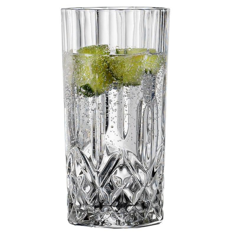 Moderne long drink glas med et flot mønster, som kan bruges som vandglas, til lækre drinks eller til meget andet. De passer perfekt til det moderne middagsbord.