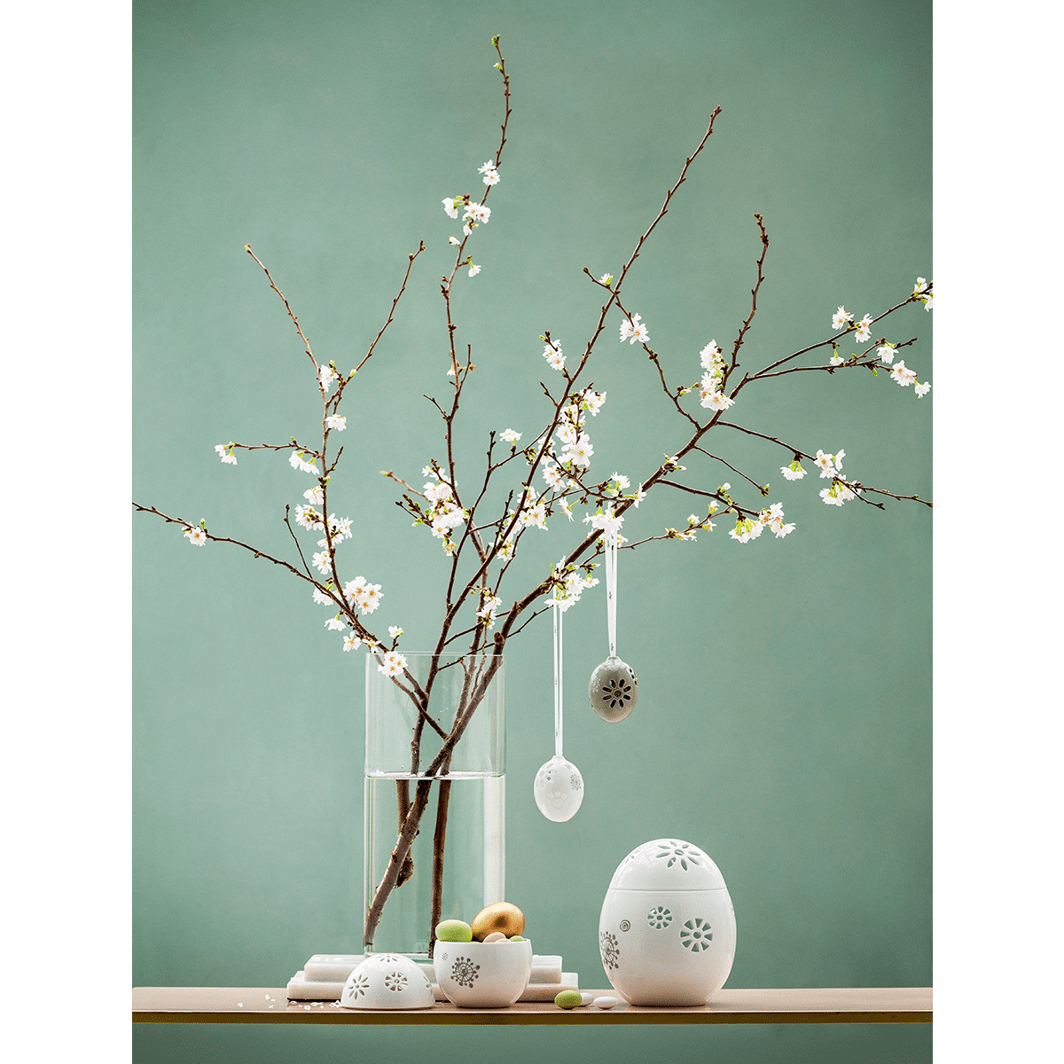 Pynt flot op til påske med Bjørn Wiinblad påskeophæng. De smukke påskeophæng vil hænge smukt i det hvide silkebånd med Bjørn Wiinblads signatur, hæng dem på en troldegren eller brug dem som en del af borddækning til påskefrokosten.