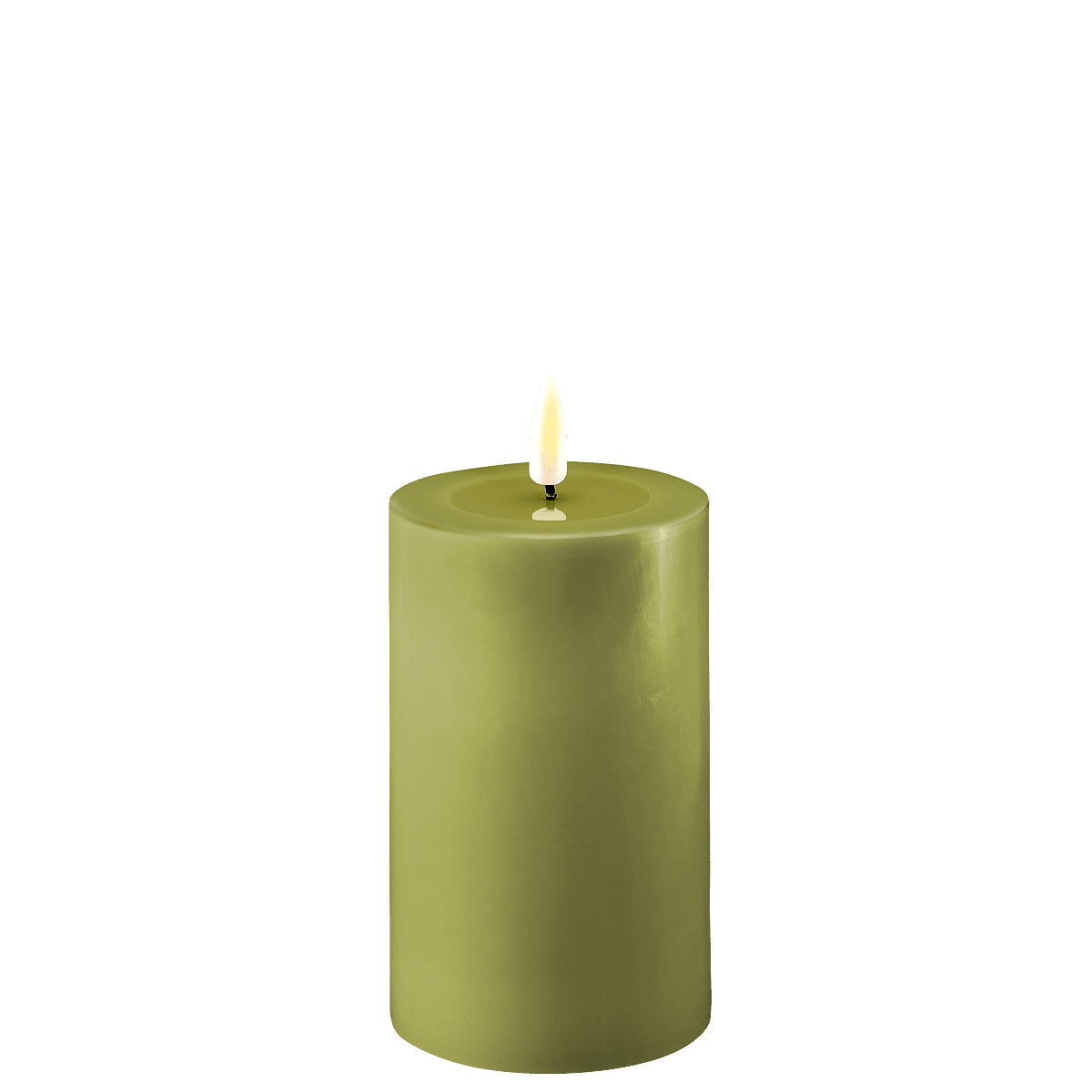 Deluxe Homeart Bloklys 12,5 cm Oliven Grøn – Ægte Stearin, 3D Flamme