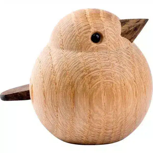 Introduktionen af MINI SPURV i ubehandlet egentræ tilføjer en charmerende og naturlig æstetik til ethvert hjem. Denne håndlavet figur er en del af den elskelige Spurvefamilie, som består af Mama, Papa, Baby Spurv og Mini Spurv. Hver figur repræsenterer et familiemedlem og er skabt med øje for detaljen af dygtige trædrejere.
