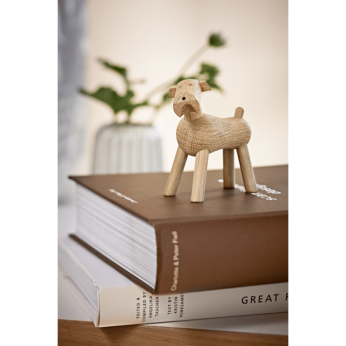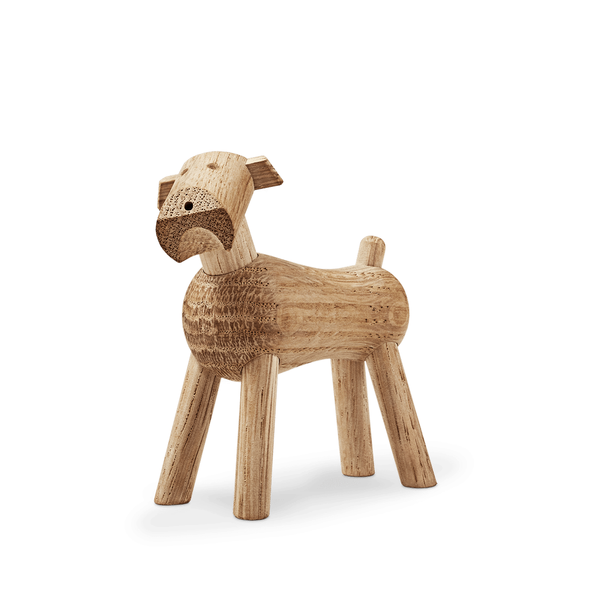Introduceret i 1935 af den anerkendte danske designer Kay Bojesen, er Tim en charmerende træfigur, der forestiller en lille terrier. Denne håndlavet figur er fremstillet i smukt natur egetræ og måler 7,5 cm i højden, hvilket gør den til en diskret, men markant tilføjelse til enhver indretning.