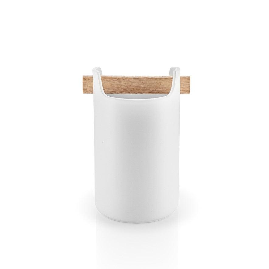 Opbevar dine køkkenredskaber eller kontorartikler med stil og elegance med Eva Solo Toolbox Hvid. Denne opbevaringsløsning er ikke kun praktisk, men også æstetisk tiltalende, hvilket gør den til en ideel tilføjelse til ethvert rum. Designet med et smart egetræshåndtag, fungerer denne krukke både som en rumdeler og et bærehåndtag, hvilket gør det nemt at omorganisere eller flytte den efter behov.